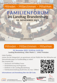 "Mitreden - Mitbestimmen - Mitwirken": 2. Brandenburger Familienforum im Landtag Brandenburg am 18. November 2023
