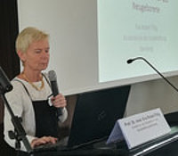 Prof. Dr. med. Eva Robel-Tillig (Chefärztin der Kinderklinik der Sozialstiftung Bamberg) stellt die Auswirkungen des Kaiserschnitts auf das Neugeborene vor (Präsentation).