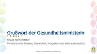Ministerin Ursula Nonnemacher (Ministerium für Soziales, Gesundheit, Integration und Verbraucherschutz) begrüßte die Teilnehmerinnen und Teilnehmer per digiatler Videobotschaft. Das Grußwort finden Sie hier zum Nachlesen sowie die persönliche Videobotschaft der Ministerin.