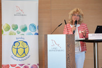 Dr. Antje Richter-Kornweitz (Landesvereinigung für Gesundheit und Akademie für Sozialmedizin Niedersachsen e.V.) berichtet zum Thema "Präventionsketten als An satz zur prävention von Kinderarmut auf kommunaler Ebene.