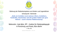 Julia Behr, JFF – Institut für Medienpädagogik in Forschung und Praxis, Büro Berlin10. März 2022, 16.00 – 18.00 Uhr (Schwerpunkt: Grundschulkinder)