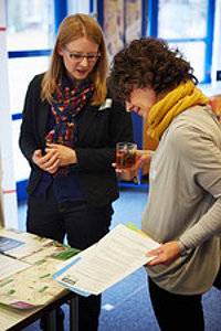 Die Referentinnen vermittelten einen Überblick über die Leistungen und Arbeitsweise der Familienpraxis „Hilfen aus einer Hand“ in Prenzlau. Seit drei Jahren betreut das multiprofessionelle Team der Einrichtung sowohl Familien mit verhaltensauffälligen Kindern als auch Familien, in denen die Eltern psychisch belastet sind. Die Mitarbeitenden leisten psychologische und pädagogische Unterstützung, um langfristig die Selbstwirksamkeit der Familienmitglieder zu stärken. Mit dem Fokus auf das ganze System „Familie“ und der darauf abgestimmten Bündelung von Hilfeleistungen sind schnelle und flexible Interventionen möglich.