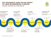 Angelehnt an das Nationale Gesundheitsziel „Gesundheit rund um die Geburt“ erwarten Sie spannende Impulsvorträge. Expertinnen und Experten zeigen unter anderem die Potenziale einer bedarfsgerechten Schwangerschaftsbetreuung, Perspektiven zur Senkung der Kaiserschnittrate, nachgeburtliche Angebote und Verbesserungsmöglichkeiten bei der Kooperation der verschiedenen Berufsgruppen im Land Brandenburg auf. Im Anschluss an die Beiträge besteht die Möglichkeit zum Austausch. Die Veranstaltungsreihe richtet sich an Fachkräfte aus der Schwangerschaftsbegleitung, Geburtshilfe, nachgeburtlichen Versorgung sowie aus nachgeburtlichen Angeboten, an (werdende) Eltern und alle Interessierten!